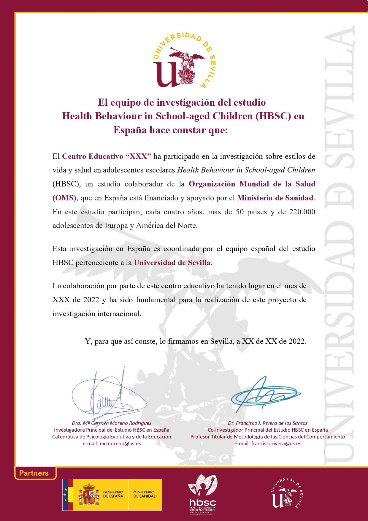 - Un diploma de reconocimiento de su participación en el Estudio HBSC . Ver un ejemplo aquí .